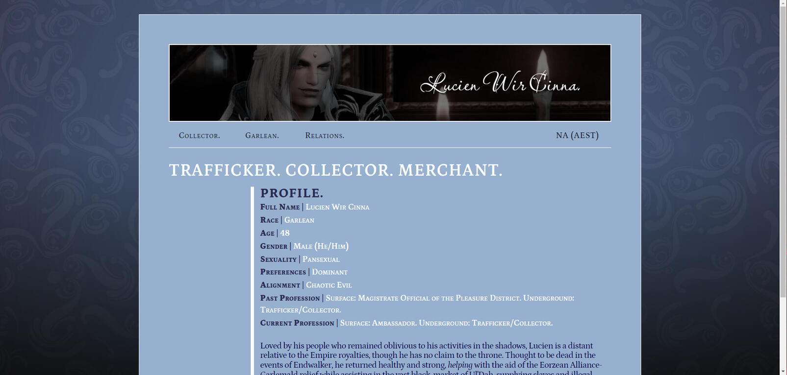 - Profile Page only (With minimal ooc detail) -